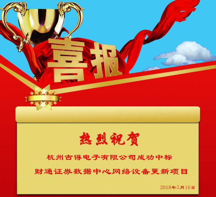 2018年7月16日,杭州古得电子有限公司中标:财通证券数据中心网络设备更新项目!